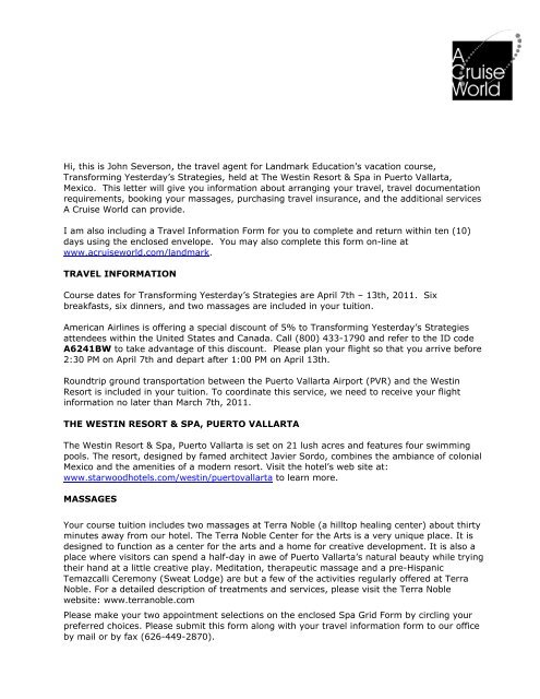 Welcome Letter A Cruise World